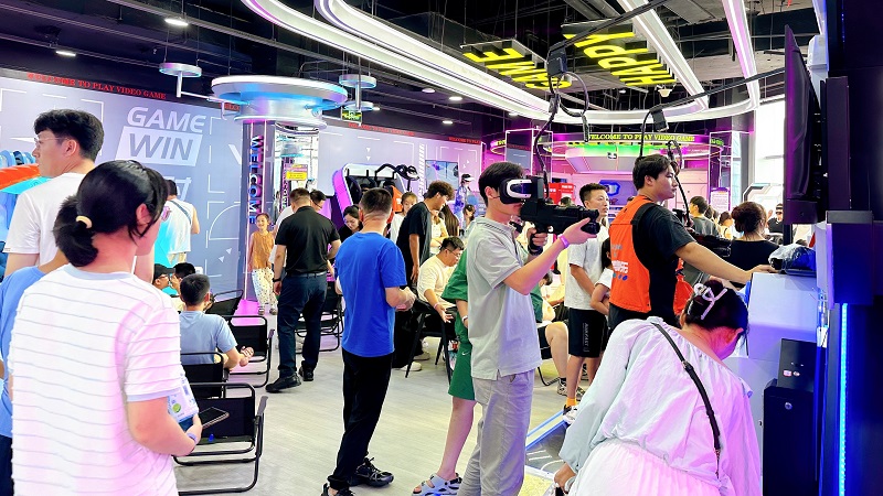 其中,二樓打造的“動(dòng)感競(jìng)技場(chǎng)”,可讓消費(fèi)者體驗(yàn)保齡球精準(zhǔn)碰撞的樂(lè)趣,在“槍王對(duì)決”和“實(shí)彈射擊”中感受腎上腺素飆升,挑戰(zhàn)“滑索”的速度與“射箭”的專注,暢玩Switch2/PS5主機(jī)游戲,或在“炫動(dòng)單車”“金剛戰(zhàn)士”“巔峰狙擊”中釋放活力,更可在“落日休憩區(qū)”憑欄觀海,動(dòng)靜皆宜;三樓打造了“科技社交匯”,讓消費(fèi)者步入VR館即可開啟奇幻冒險(xiǎn),通過(guò)“宇宙一號(hào)”“傘途”“雙人360”“樂(lè)享滑雪”等7大尖端設(shè)備穿梭虛實(shí)之境。同時(shí),“聲控派對(duì)”“開放式舞臺(tái)”點(diǎn)燃社交熱情,桌游、麻將、碰碰車、臺(tái)球、飛鏢、模擬網(wǎng)球、“悅動(dòng)格子”“360°單車”等豐富選擇滿足不同興趣群體,更有私密“轟趴房”和舒適“太空艙”提供專屬聚會(huì)與休憩空間。